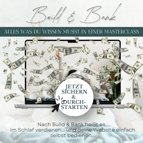 Mein Leitfaden BUILD & BANK erklärt dir von 0 auf, wie du endlich deinen Wunschumsatz mit deiner Website erreichst und worauf es wirklich ankommt – Schritt für Schritt!